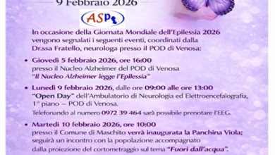 L’Azienda Sanitaria di Potenza il 5, 9 e 10 febbraio 2026 celebra la Giornata Internazionale dell’Epilessia con delle manifestazioni organizzate…