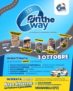 Il viaggio della UIL Basilicata – On the Way 131 – tra i 131 Comuni – continua domani 3 ottobre nella Valle del Mercure, ai confini della Basilicata, tra comunità che custodiscono tradizioni, natura e resilienza. Un cammino di ascolto, partecipazione e futuro.