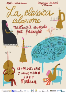 MATERA – Tre mattinate di musica dal vivo di qualità dedicate a bambini e bambine e ai loro genitori: è questo il cuore de “La Classica Colazione”, rassegna di concerti che si svolgerà a Matera in luoghi e orari accessibili alle famiglie con figli nell’età dell’infanzia.