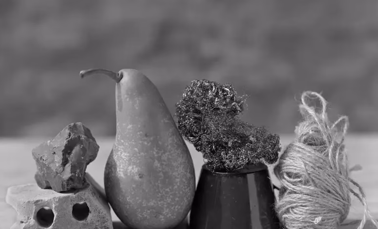 Allestì uno scenario semplice all’aperto, lasciando che la luce naturale scolpisse le forme e i contrasti tra gli oggetti. In quel dialogo fra materia, geometria e spazio, l’eco morandiana divenne progressivamente più nitida.