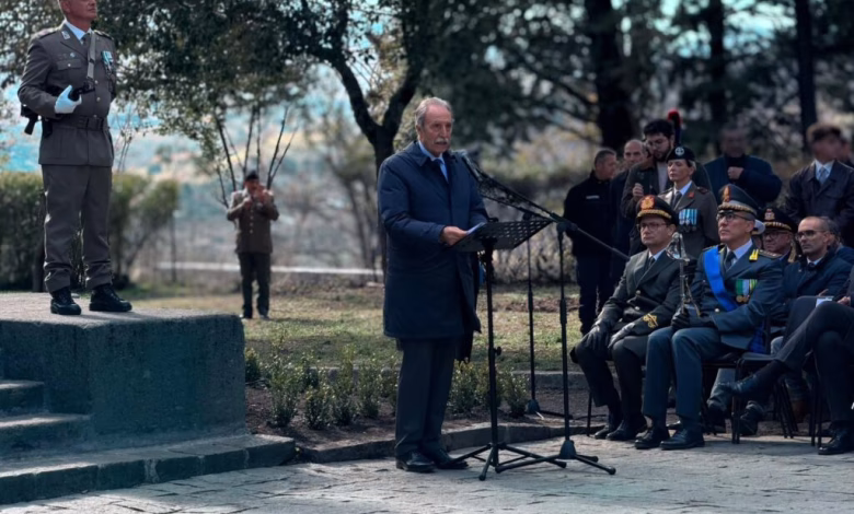 Riferendosi ai monumenti ai caduti che punteggiano i nostri paesi, Bardi ha affermato: “Non sono solo pietra. Sono voce. Sono memoria. Sono promessa”.