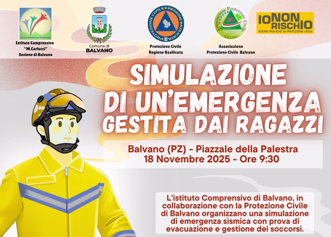 La Scuola di Balvano, in collaborazione con l’Associazione Protezione Civile Balvano, organizza una significativa iniziativa formativa: “Simulazione di un’emergenza gestita dai ragazzi”, che si terrà martedì 18 novembre 2025 alle ore 9:30.