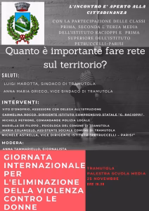 Il comune di Tramutola, in sinergia con le scuole del territorio, organizza un momento di confronto per riflettere insieme sul tema della violenza di genere ed aprire un dialogo ed un confronto attivo proprio con gli studenti del territorio. Il tavolo dei relatori risponderà anche ad un quesito importante: Quanto conta fare rete sul territorio per contrastare l’insorgenza di questo fenomeno?
