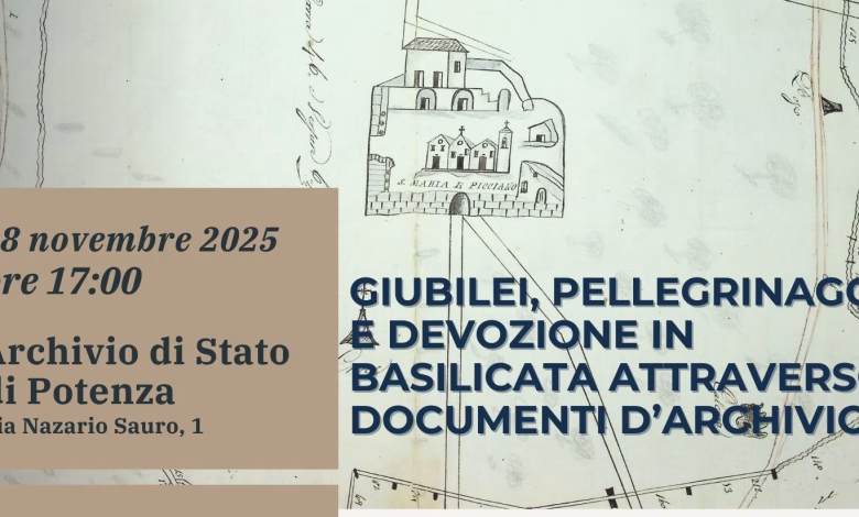 L’Archivio di Stato di Potenza organizza l’incontro “Giubilei, pellegrinaggi e devozione in Basilicata attraverso i documenti d’archivio”, che si terrà venerdì 28 novembre 2025 alle ore 17:00 presso la sede di via Nazario Sauro, 1.
