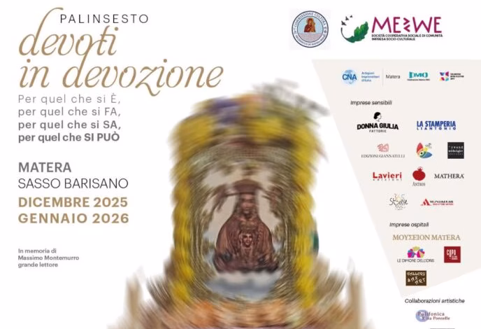 “Devoti in Devozione” è il palinsesto di iniziative socio-culturali che animeranno il Sasso Barisano di Matera tra dicembre 2025 e gennaio 2026, offrendo un percorso diffuso tra mostre, concerti, presentazioni di pubblicazioni, performance di teatro-musica, conversazioni a più voci.