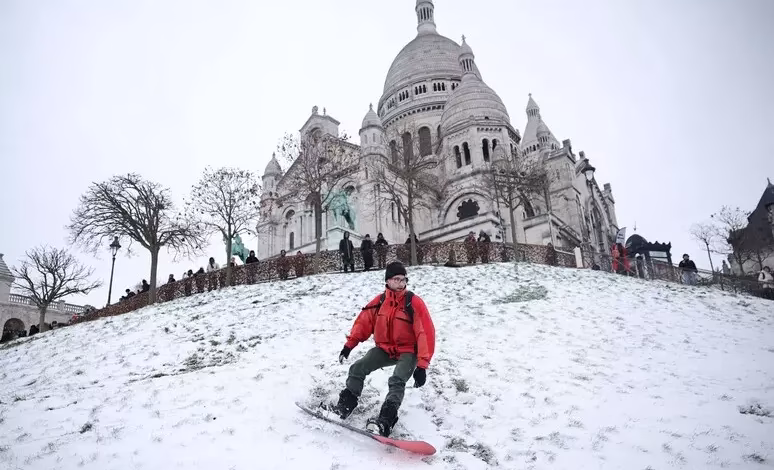 Dopo una breve pausa, la neve ha ripreso a cadere su gran parte della Francia, in particolare sull’Ile-de-France, la regione che comprende Parigi.