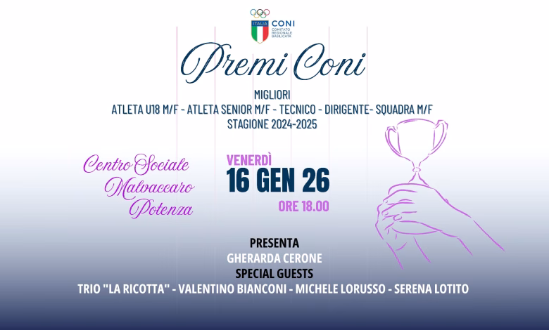 Si svolgerà venerdì 16 gennaio, il consueto appuntamento annuale con i Premi CONI, destinati ad atleti, progetti sportivi, dirigenti e tecnici che si sono distinti per meriti sportivi, organizzativi e dirigenziali nella passata stagione 2024/2025.