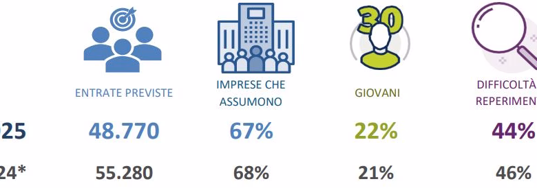 L’anno appena concluso ha visto una previsione delle assunzioni di quasi 49mila unità, segnando un rallentamento rispetto al 2024 (le nuove entrate avevano superato quota 55.000).