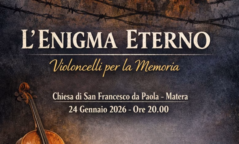 Sabato 24 gennaio, alle ore 20.00, la Chiesa di San Francesco da Paola (Via XX Settembre 13, Matera) ospiterà il concerto “L’Enigma Eterno. Violoncelli per la Memoria”, promosso dal Conservatorio di Musica “E.R. Duni” di Matera in occasione della Giornata della Memoria.