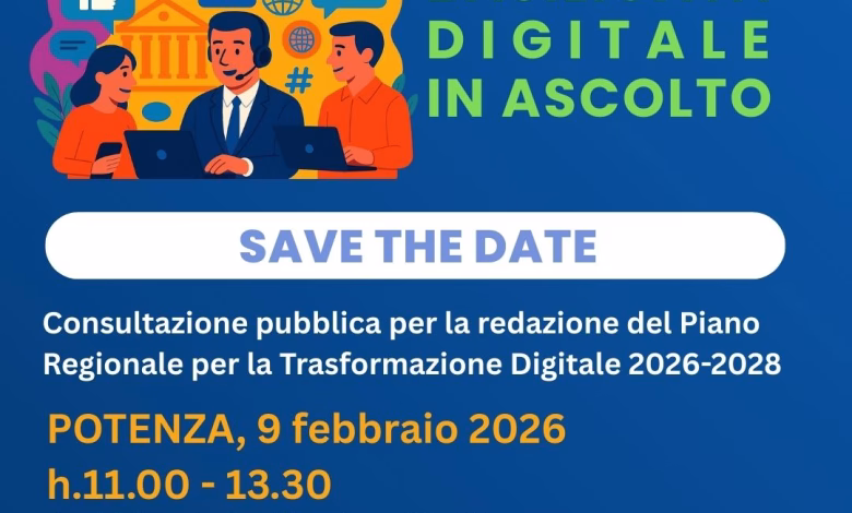 Metodologia, strumenti, dati, mappatura digitale, soluzioni da adottare. Entra nel vivo “Basilicata Digitale in ascolto”, la consultazione pubblica per la trasformazione digitale nel triennio 2026-2028.
