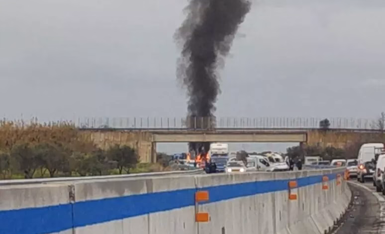 Secondo quanto emerso, i rapinatori hanno bloccato la carreggiata posizionando alcune auto di traverso, interrompendo il traffico, per poi far esplodere il furgone portavalori.