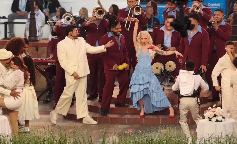 Ed è proprio su questo terreno che Bad Bunny ha voluto misurarsi. Il cantante portoricano ha ricreato allo stadio un vero villaggio multiculturale, popolato da star come Lady Gaga, Ricky Martin, Cardi B, Pedro Pascal e Jessica Alba, ma anche da persone comuni: una taqueria di Los Angeles, uno degli ultimi social club portoricani di Brooklyn, famiglie e lavoratori.