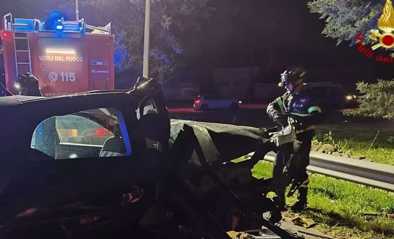 L’auto su cui viaggiava, forse a causa dell’asfalto reso scivoloso dalla pioggia, è finita contro il guard-rail e poi si è schiantata contro un albero. Nell’impatto il motore si è staccato dalla vettura, finendo a decine di metri di distanza.