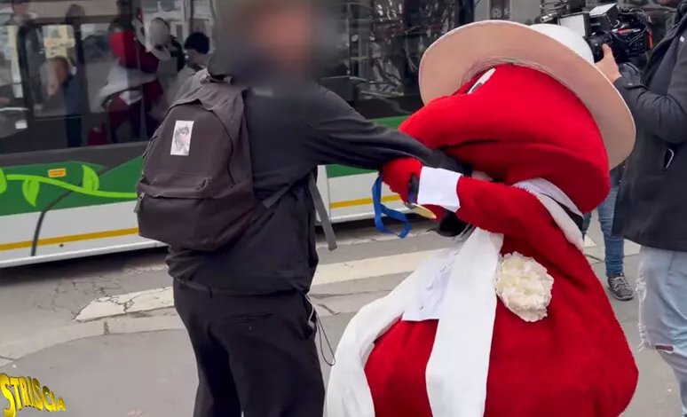 Per la prima volta in 36 anni di carriera, il celebre Gabibbo è stato malmenato durante un servizio televisivo.