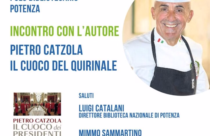 Sabato 14 febbraio, alle ore 10.30, presso la Sala conferenze del Polo bibliotecario di Potenza, si terrà la presentazione del libro di Pietro Catzola “Il Cuoco dei Presidenti. Vita e ricette di un marinaio al Quirinale” (Edizioni Solferino), vincitore del Premio Selezione Bancarella della Cucina 2023.