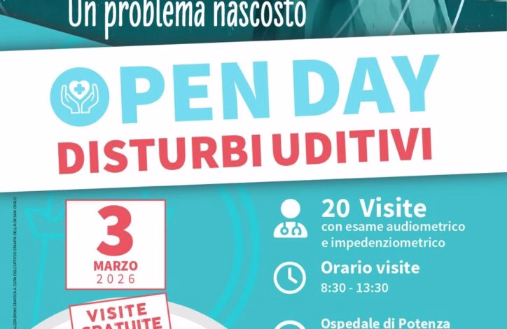 Martedì 3 marzo 2026, sono previste 20 visite gratuite, comprensive di esame audiometrico e impedenzometrico, in programma dalle ore 8:30 alle ore 13:30, nell’ambulatorio di Otorinolaringoiatria, padiglione B, secondo piano, dell’ospedale San Carlo di Potenza.