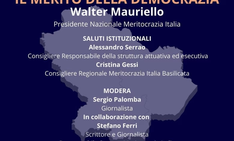 Assieme al Presidente, a Matera, ci saranno il Consigliere Responsabile della struttura attuativa ed esecutiva Alessandro Serrao e la Consigliera regionale per la Basilicata Cristina Gessi. Modera il giornalista Sergio Palomba, Direttore Responsabile di Basilicata Media, in collaborazione con lo scrittore e giornalista Stefano Ferri, responsabile dell’ufficio stampa di Meritocrazia Italia.